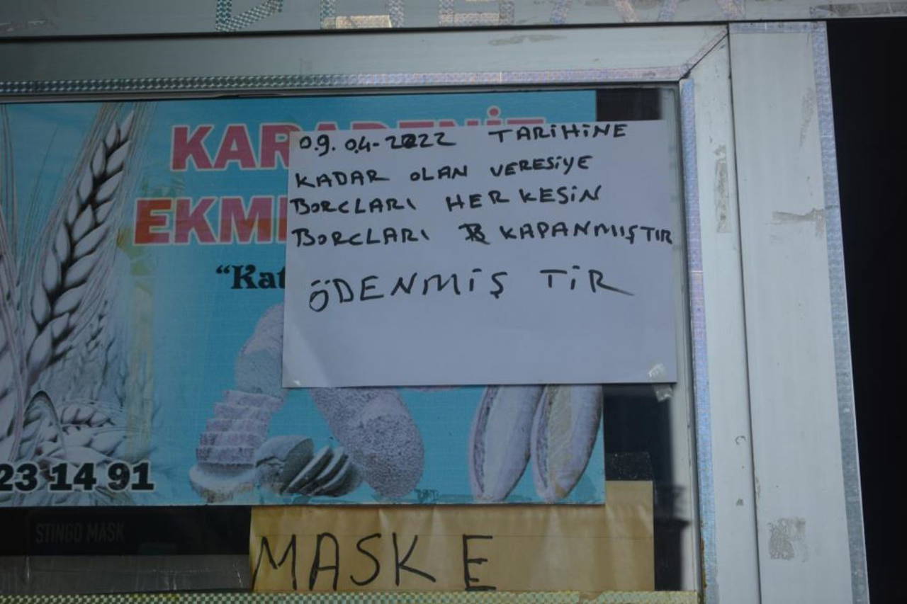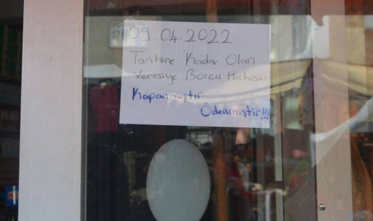 Gizemli hayırseverin yaptığı bu davranış esnaf ve vatandaşları sevince boğdu. Yaşanılan bu olay sonrası esnaflarda iş yerlerinin camlarına "9 Nisan 2022 tarihine kadar olan veresiye borcu herkesin kapanmıştır" yazısı astı.