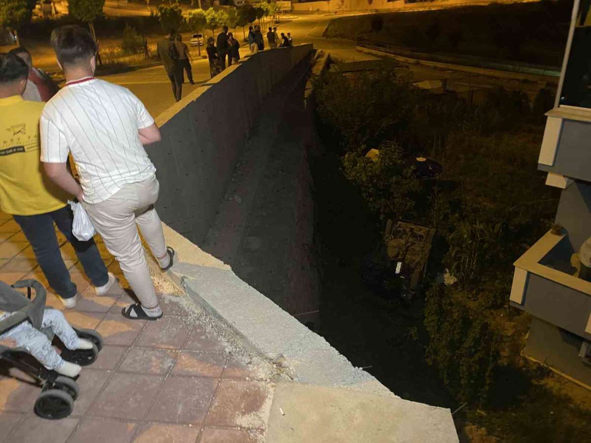 Hızla ilerleyen otomobil, yaklaşık 7 metre yükseklikteki istinat duvarından bir evin bahçesine uçtu. Kazada otomobil sürücüsü yaralandı.