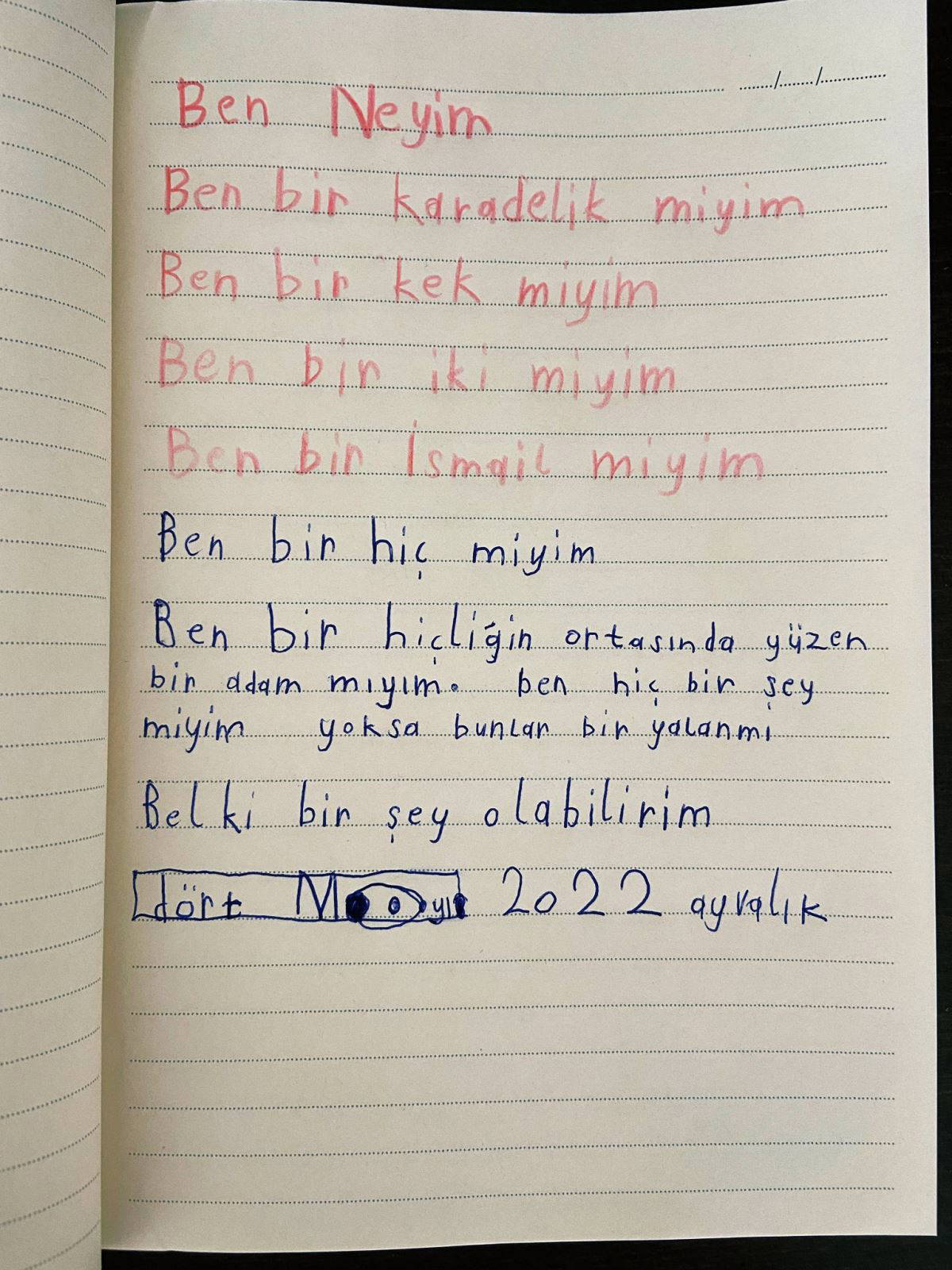 Yedi yaşındaki oğlum elinde bu şiirle geldi, şaşkınız;) pic.twitter.com/RlyB7fqu2Z
