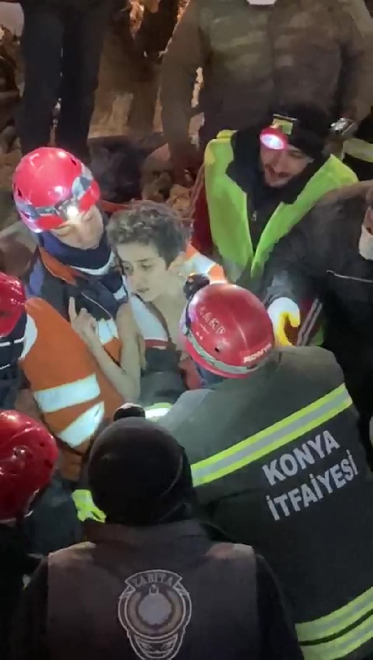 Konya Büyükşehir Belediyesi ekipleri ile Karatay Belediyesi arama-kurtarma ekipleri, bir apartmanın enkazında yaşam belirtisi aldı.