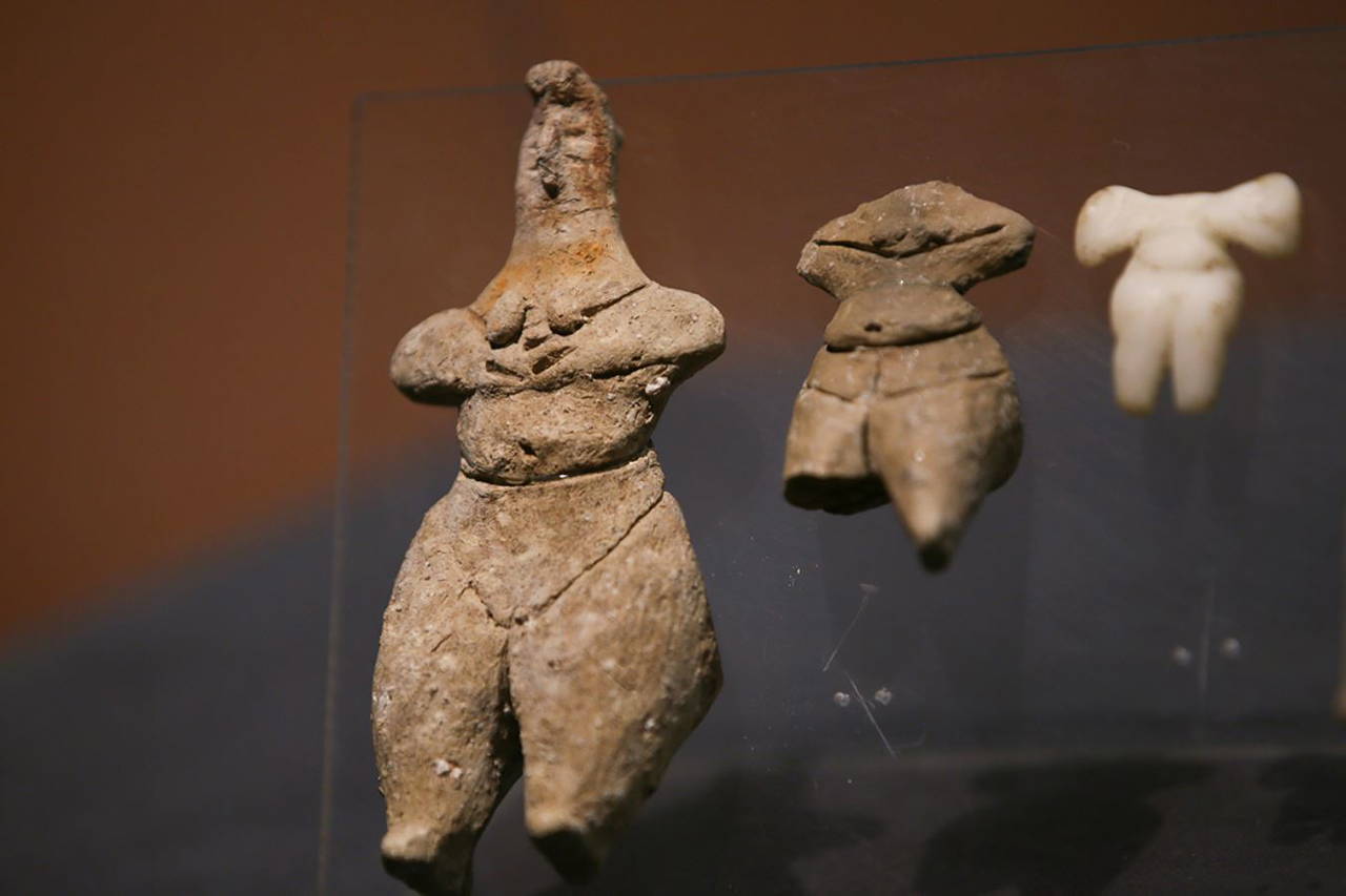 Ana tanrıça ve tanrıları tasvir eden bazı heykelciklerin ayakta göğüslerini tutar şekilde ya da oturur pozisyonda betimlendiği görülüyor.