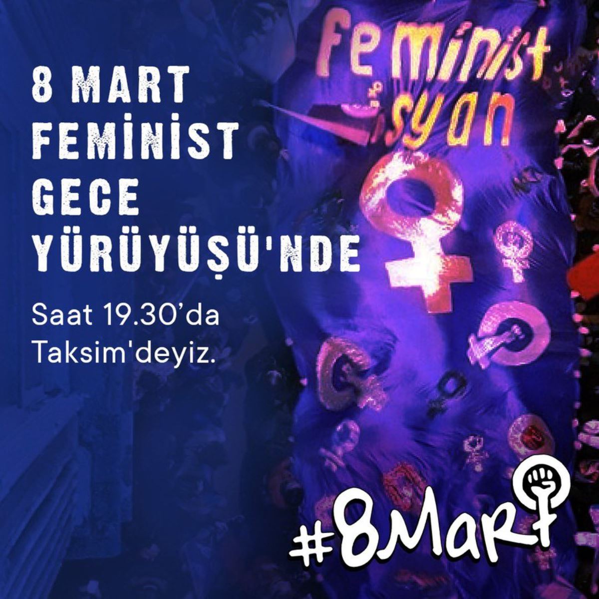 8 Mart Feminist Gece Yürüyüşü İnisiyatifi, yarın akşam saat 19.30 için Taksim'e çağrı yaptı.