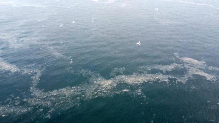 Deniz yüzeyini kaplayan beyaz tabaka drone ile havadan görüntülendi.