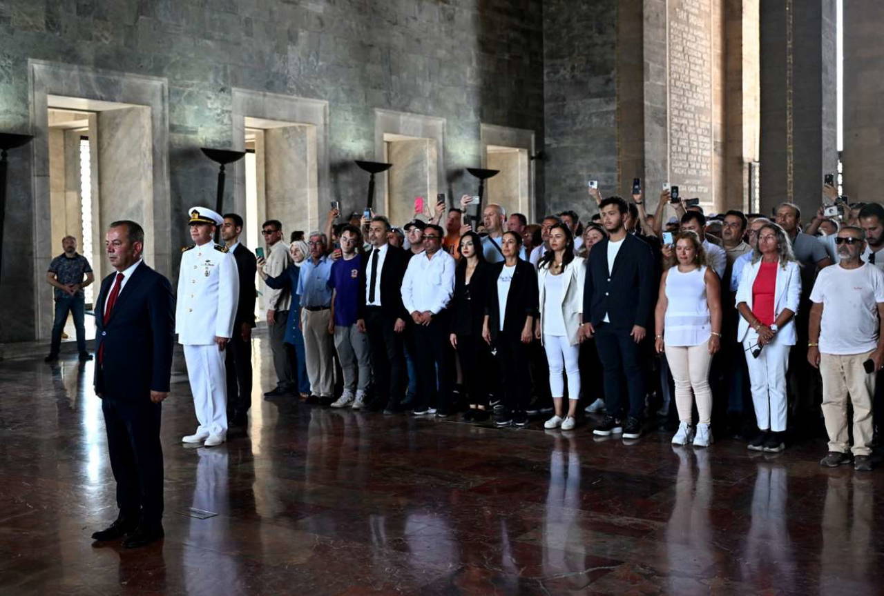 Aslanlı Yol'dan yürüyerek Atatürk'ün mozolesine gelen Özcan ve beraberindeki grup, mozoleye çelenk bıraktı, ardından saygı duruşunda bulundu.