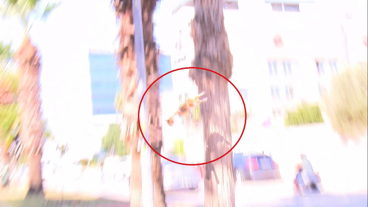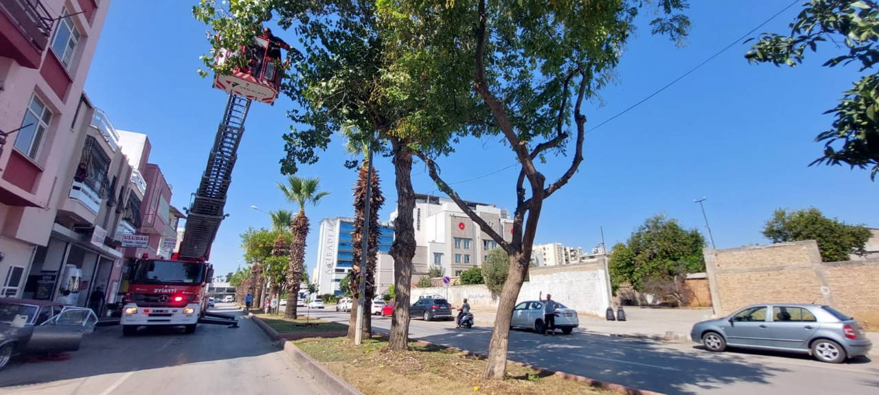 Daha sonra başka bir ekip otomatik merdivenli itfaiye aracıyla adrese geldi. Ekiplerin kurtarmaya çalıştığı sırada kedi ağaçtan inerek hızla bölgeden uzaklaştı.