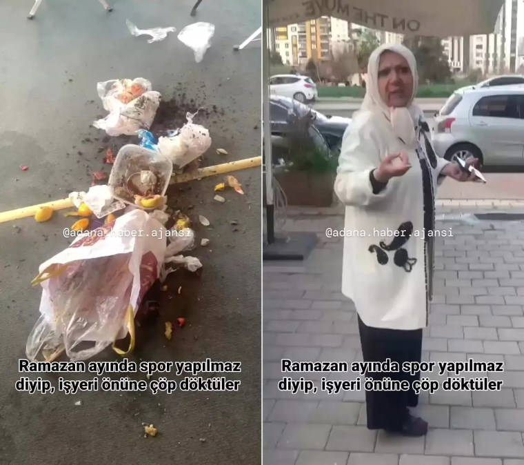 "Adana Haber Ajansı" isimli Instagram hesabı tarafından paylaşılan habere göre; bir grup kadın 'Ramazan ayında spor yapılmaz' diyerek fitness salonunun önüne çöp döktü.