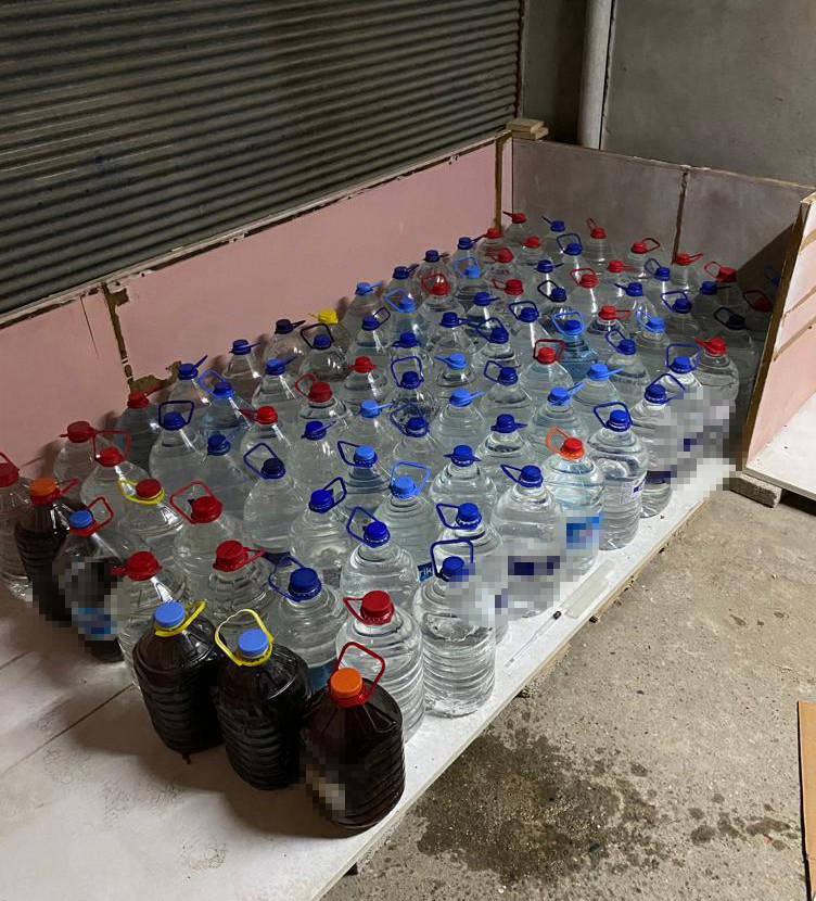 Yapılan aramada, 5'er litrelik pet şişelere doldurulmuş 565 litre sahte içki ele geçirildi. Operasyonda 2 şüpheli de gözaltına alındı.