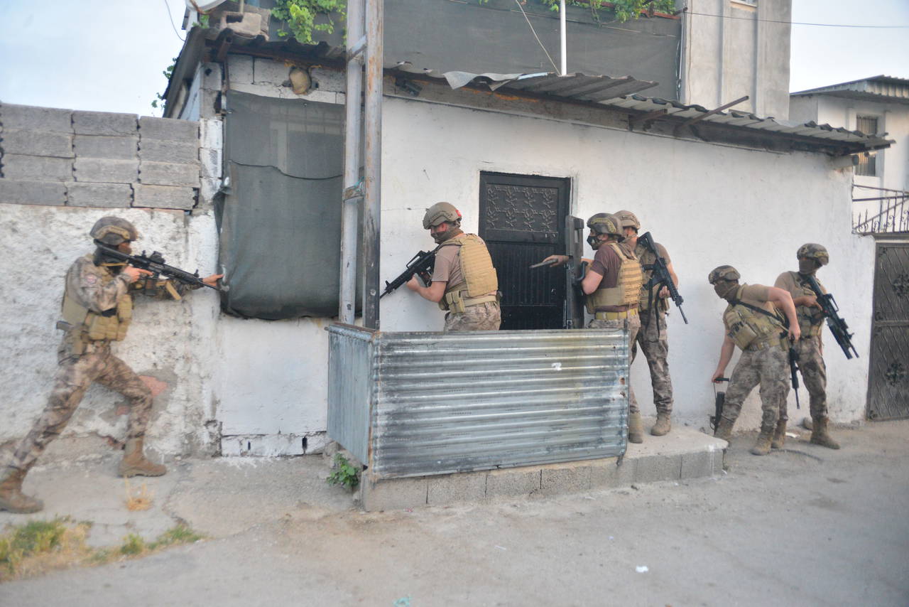 Özel harekat polislerinin demir kapılarını koçbaşlarıyla kırarak girdiği evlerde 46 kişi, yakalanarak gözaltına alındı.