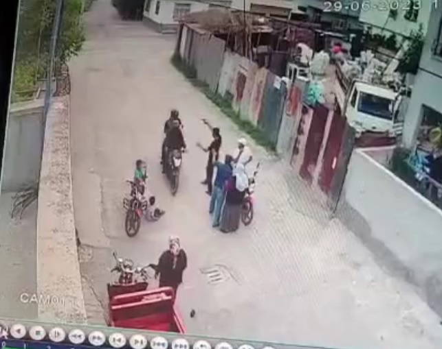 Sokakta akrabalarıyla sohbet eden baba ve oğlu, kendisine silahla yaklaşan motosikletteki kişileri fark edince tabancayla ateş saçtı. İki grubun birbirlerine tabancalarla ateş ettiği anlar ise bir evin güvenlik kamerasınca kaydedildi.