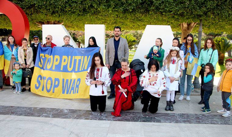 Kentte yaşayan Ukraynalılar, Adana Ukrayna Kültür Eğitim Yardımlaşma ve Dayanışma Derneği'nin çağrısıyla, Atatürk Parkı'nda bir araya geldi.