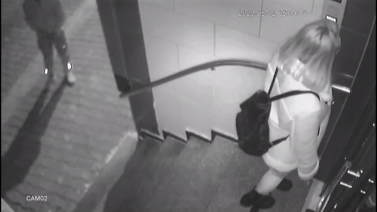 Görüntülerde, şüphelinin evine dönen kadını ara sokaktan itibaren takip ettiği görülüyor. Kadın yol boyunca telefonda konuşuyor. Bu sırada pantalonunun kemerini açan şüpheli, takibini sürdürerek apartmanın önüne kadar geliyor.