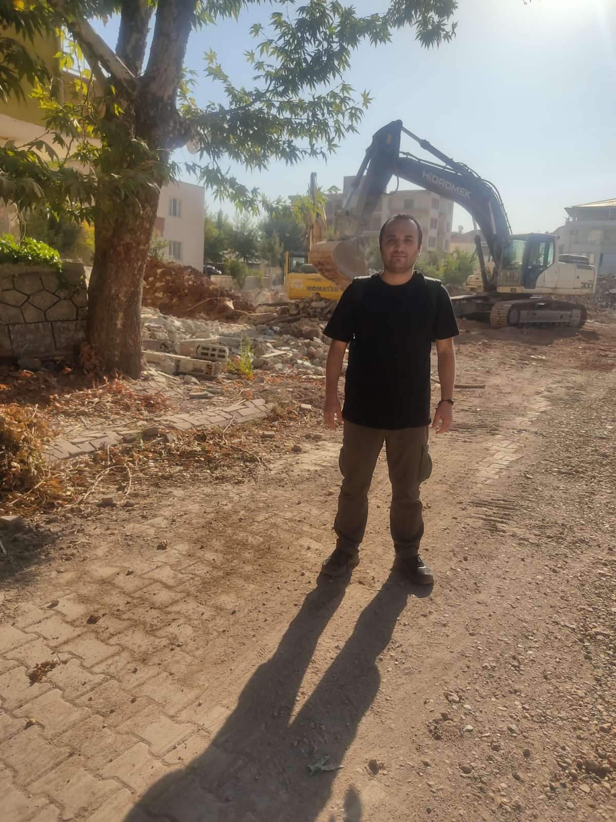 Çalışmaktaki kepçe operatörüne selam veriyoruz. Bölgede herkes derdini anlatacak kişi arıyor. Bir süre makineyi durdurup bizle sohbet ediyor. 2004’den beri bu işi yapıyormuş. Deprem bölgesinde 2 aydır çalışıyor. Asbest tehlikesinin merkezinde onlar var. Ama sulama yok. “Herhangi bir önlem, gıda takviyesi var mı” diyoruz, hayır diyor. “Durumun farkındayız ama yapacak bir şey yok” diyor önce. Devamında ise şu sözler yarı öfkeli yarı sitemkar dökülüyor dilinden: