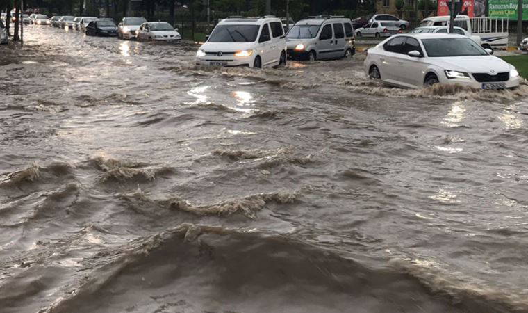Adıyaman'da akşam saatlerinde kuvvetli sağanak ve dolu yağışı başladı. Beraberinde seli getiren yağışlar, hayatı felç etti.
