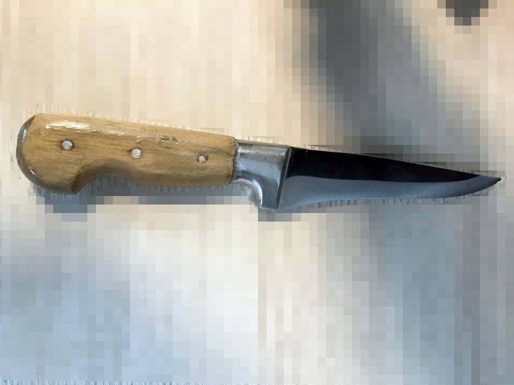 'Kurban bıçağı' olarak tabir edilen, kesici kısmı 14 santimetre, sap uzunluğu ise 12 santimetre olarak ölçülen alete el koyuldu.