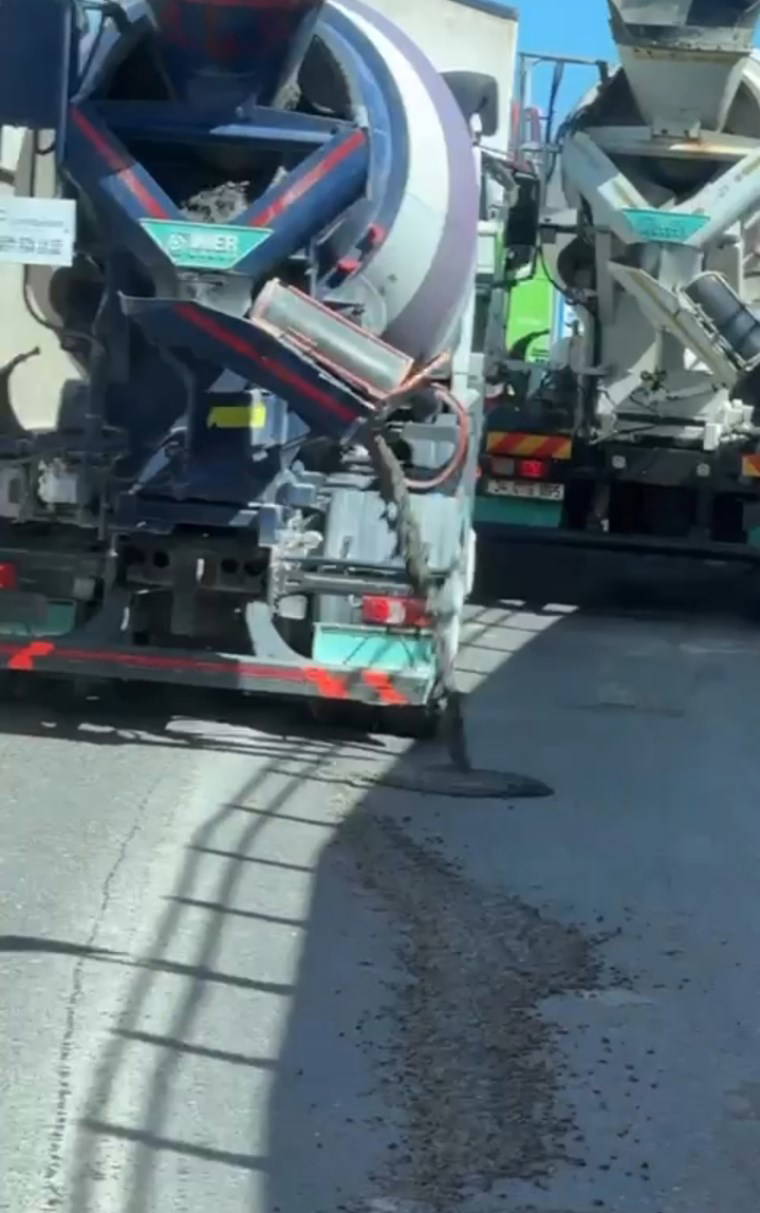 Hadımköy Yolu Caddesi'nde seyir halindeki mikserinin şoförü, kapağı açık olan aracın beton mikserinin içerisindeki betonu yola dökmeye başladı.
