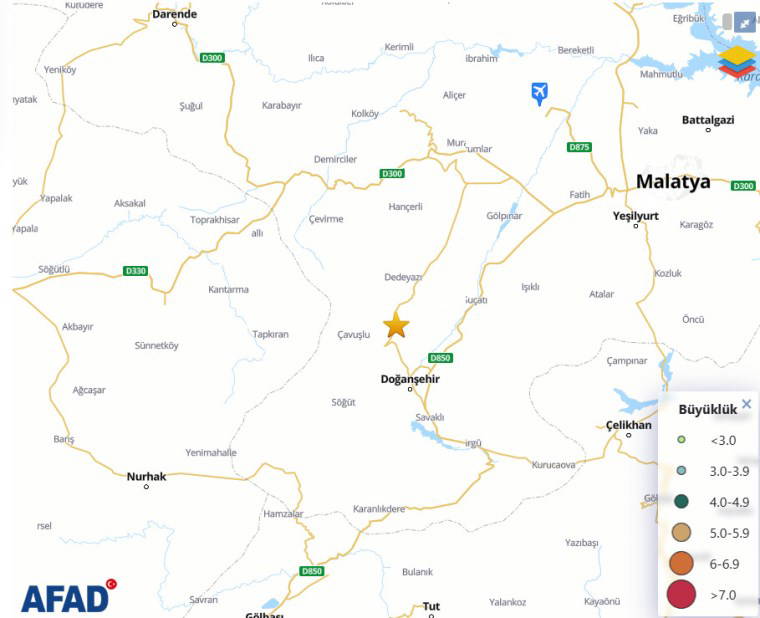 Afet ve Acil Durum Yönetimi Başkanlığı (AFAD), Malatya'nın Doğanşehir ilçesinde 4.6 büyüklüğünde deprem meydana geldiğini duyurdu.