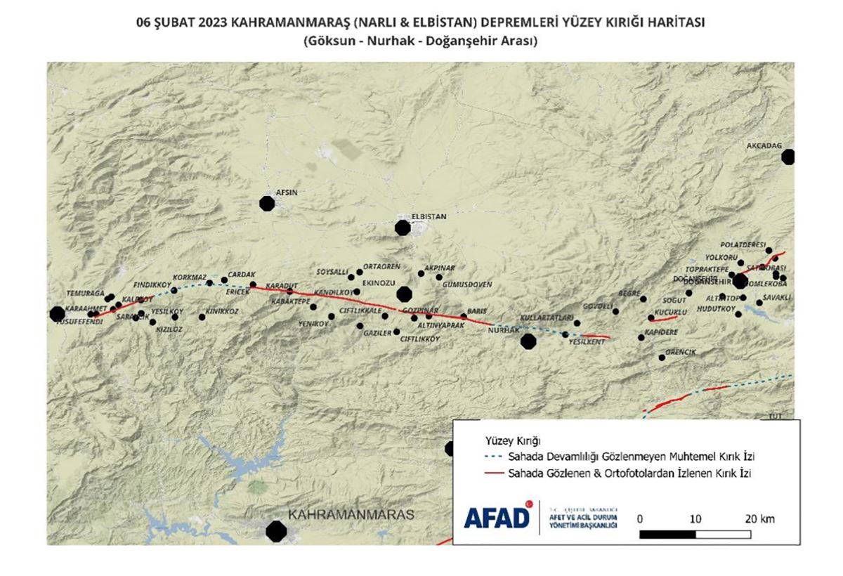Depreme kaynaklık eden fayların tanımlanması, meydana gelen yüzey kırıklarının tespit edilmesi ve yapısal hasar nedenlerinin ortaya konması amacıyla 10 Şubat-16 Şubat'ta bölgede yapılan saha çalışmalarının sonuçlarını içeren raporda, her iki depremin Kahramanmaraş, Hatay, Adıyaman, Gaziantep, Malatya, Kilis, Diyarbakır, Adana, Osmaniye, Şanlıurfa ve Elazığ'da çok şiddetli hissedildiği can kaybı ve ağır hasara neden olduğu vurgulandı.