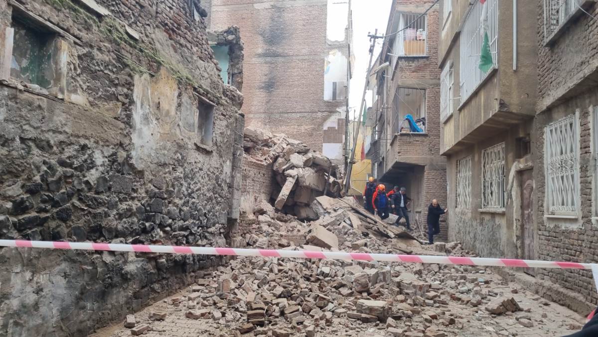 Diyarbakır'ın Sur ilçesi İskenderpaşa Mahallesi'nde daha önce Kahramanmaraş merkezli depremlerde ağır hasar alarak boşaltılan 5 katlı bir bina kendiliğinden çöktü.
