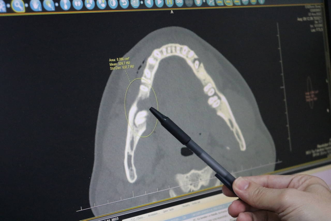 Doç. Dr. Deniz Baklacı, “Hasta bize ağızda geçmeyen yara şikayetiyle başvurdu. Yara bölgesinden alınan biyopsi sonucu malign karakterde (kötü huylu tümör) gelmesi sonucu tedavi planlaması yaptık. Hastalığın kemik komşuluğu olması nedeniyle buradan çıkarılacak parçanın yerine fonksiyonel olan bir organ olması açısından rekonstrüksiyonun yapılması gerekiyordu. Bizim dahil olduğumuz kısım tümörün çıkarılması ve boyunun temizlenmesi, ancak geride kalan boşluk ve çenenin yeniden onarımında biz işi plastik ve rekonstrüktif cerrahi bölümüne devrediyoruz” dedi.