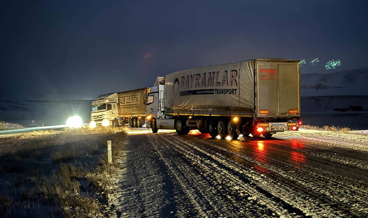 Çok sayıda tırın kayarak yoldan çıktığı kara yolunun 2025 rakımlı İpek Geçidi'nde, İran güzergahı ulaşıma kapandı.