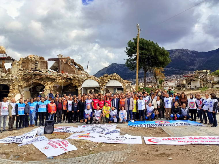 “Asrın felaketinin üzerinden bir yıl geçti. Bakanlık tarafından sanıldı ki her şey düzeldi. Geçici önlemler kaldırıldı, yeni düzenlemeler yapılmadı. Üstüne yetmiyormuş gibi; kontroller, denetimler artırıldı” ifadelerinin de yer aldığı açıklamada, “Hala hasarlı binalarda çalışmaya zorlanıyoruz, hala konteynerlerde hizmet veriyoruz, hala ASM’lerimize güçlendirme yapılmasını bekliyoruz, hala ASM dışında zorla görevlendiriliyoruz. Aile hekimliği çalışanları kalıcı hizmet vereceği iş yerine kavuşamıyor. Ama a sınıfı hizmet bekleniyor! Malzemen eksik, odan eksik deniyor, gruplandırma denetimleri yapılıyor, soruşturmalar açılıyor” denildi.