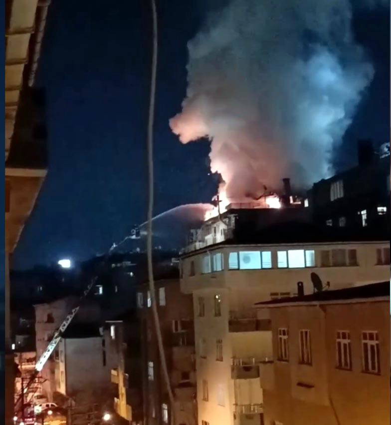 İtfaiyenin müdahalesiyle söndürülen yangında apartmanın teras katı kullanılamaz hale geldi.