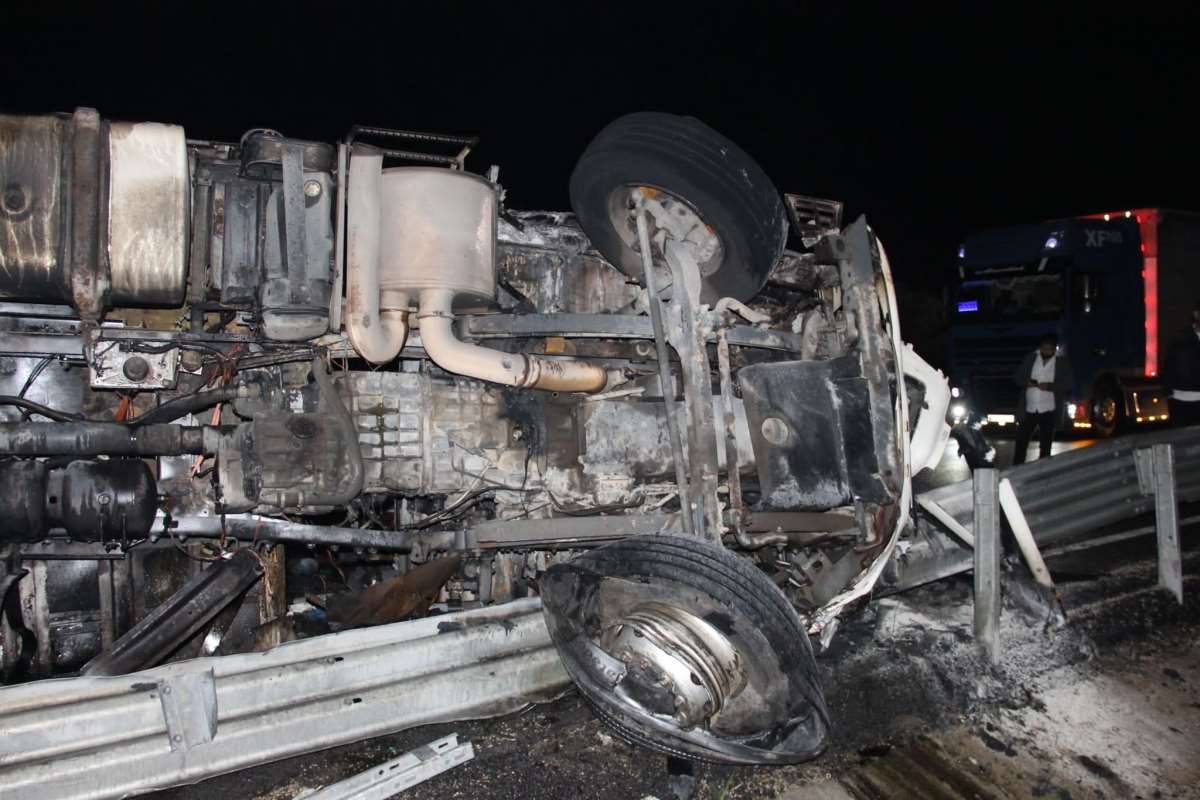 Sürücüsünün ismi ve plakası henüz öğrenilemeyen büyükbaş hayvan yüklü TIR, Afyonkarahisar - Uşak karayolu Çalışlar köyü yakınlarında devrilerek yanmaya başladı. İhbar üzerine kaza yerine sağlık, itfaiye ve jandarma ekipleri sevk edildi.