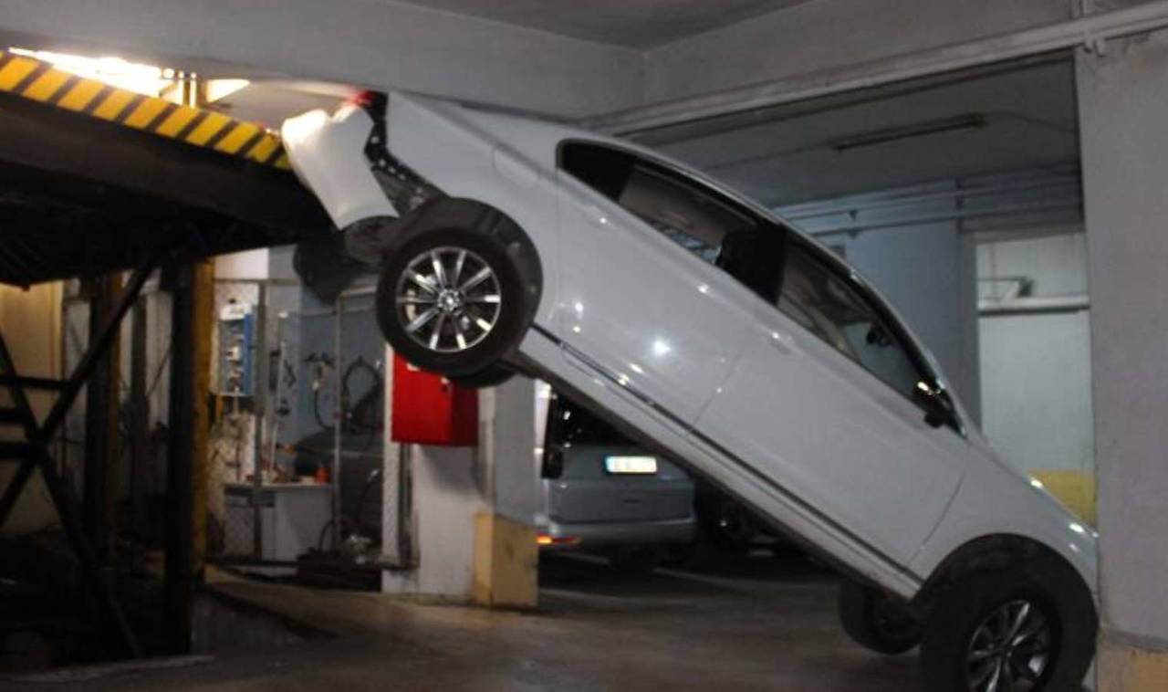 35 HZZ 99 plakalı aracın sürücüsü, asansörü kullanarak bir alt kata aracını park etmek istedi. İddiaya göre, asansör alt kata inerken bir anda arıza nedeniyle tekrar yukarı çıkınca aracın arka kısmı asansör tabanı ve otopark katı arasına sıkıştı.