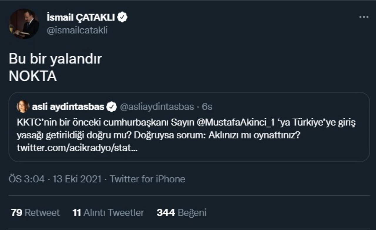 Bakanlık sözcüsü İsmail Çataklı, iddiaya ilişkin tweeti, 'Bu bir yalandır. Nokta' yanıtını verdi.