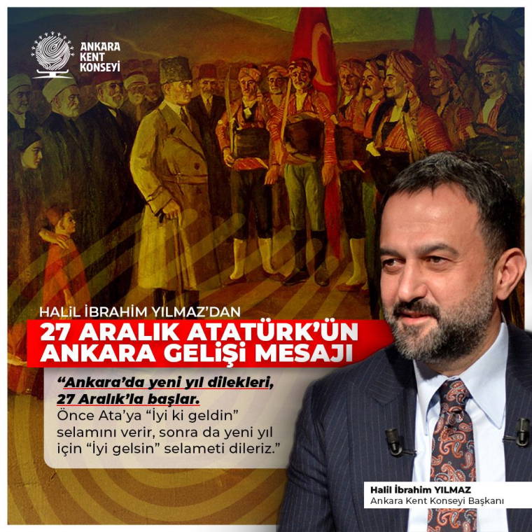 Ankara Kent Konseyi Başkanı Halil İbrahim Yılmaz, Atatürk’ün Ankara’ya gelişinin 105’inci yılı kapsamında açıklama yaptı. Yılmaz, Ulu Önder Gazi Mustafa Kemal Atatürk’ün Ankara’ya geliş sürecini anlatarak şu ifadeleri kullandı: