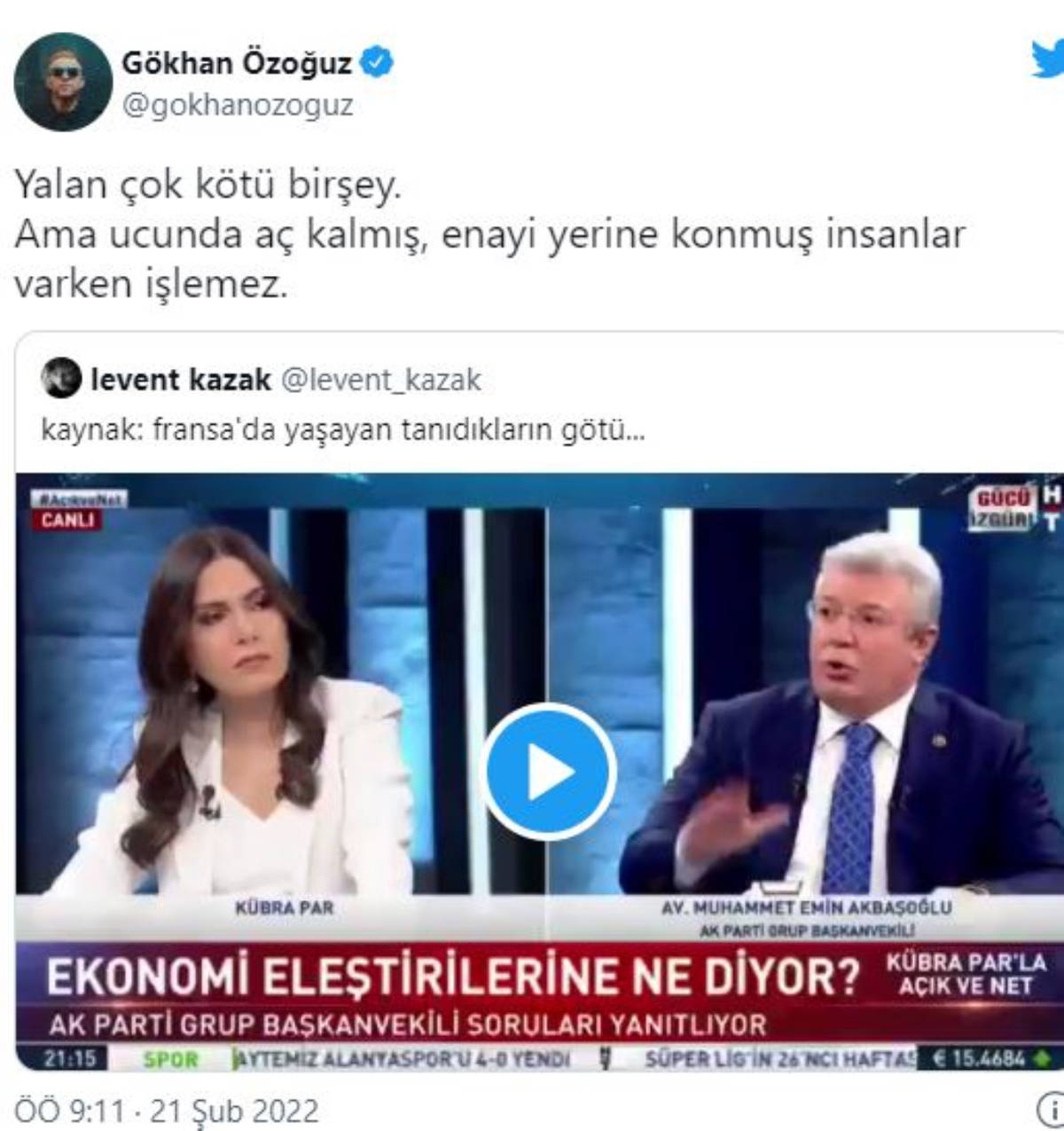 AKP Grup Başkanvekili Muhammed Emin Akbaşoğlu, katıldığı Habertürk canlı yayınında enflasyona ilişkin tepki çeken açıklamalarda bulunmuştu.
