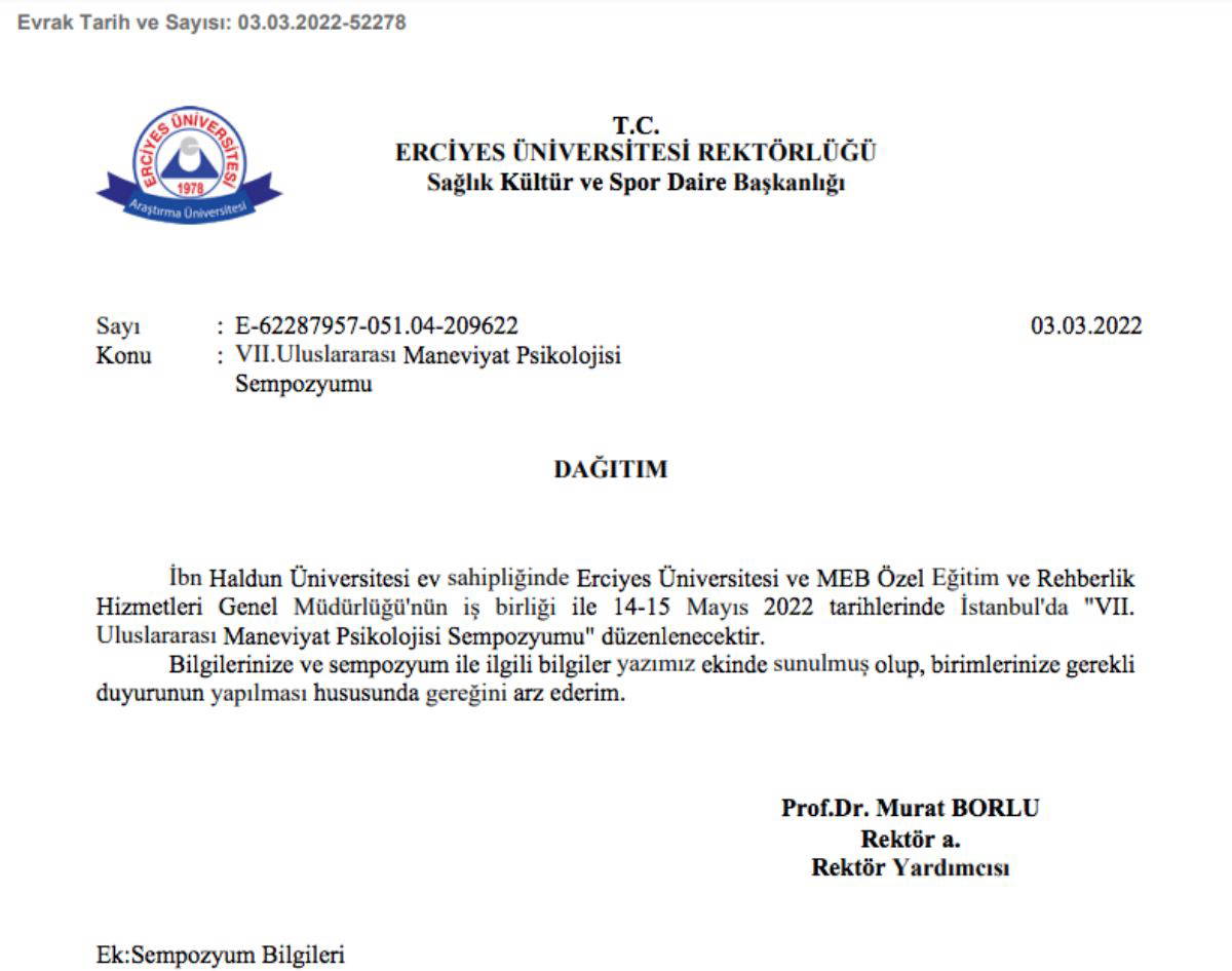 Etkinliğin düzenlenmesiyle ilgili rektörlüğün resmi yazısı