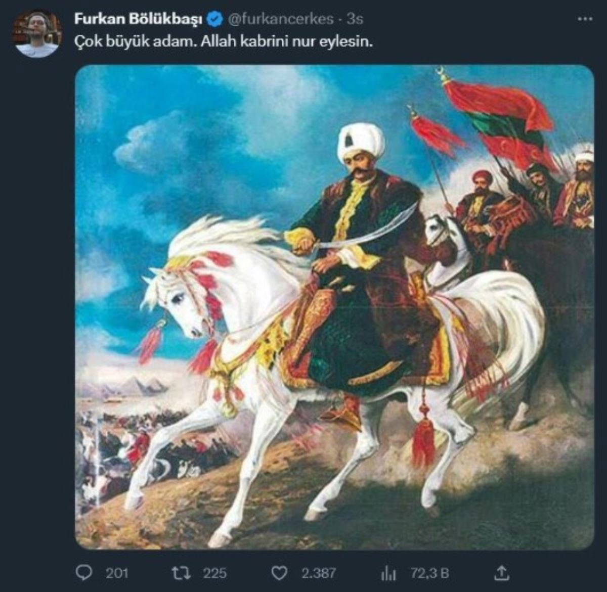 Bölükbaşı, sosyal medyadaki tepkilerin ardından paylaşımı kaldırdı. Bölükbaşı, daha sonra Alevi katliamlarıyla anılan Osmanlı padişahlarından Yavuz Sultan Selim'in görselini paylaştı.