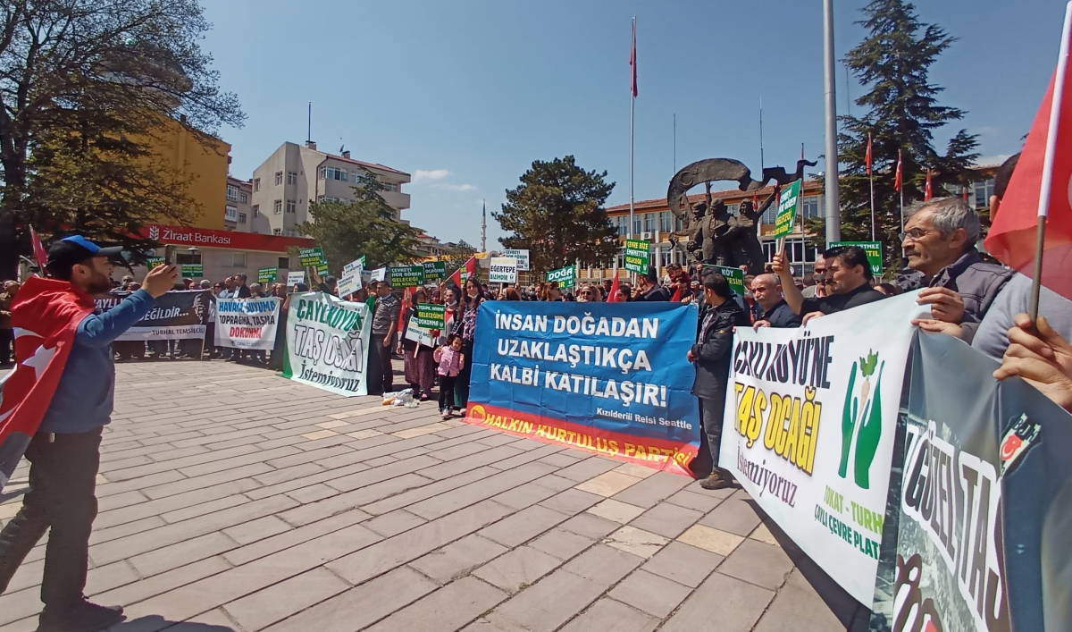 Tokat Turhal Çaylı Çevre Platformu adına açıklama yapan Gülay Gedik,"Bizler taş değil aş üretmek istiyoruz" dedi.