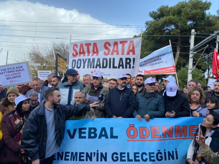 İzmir’de Menemen Belediye Başkan Vekili AKP’li Aydın Pehlivan, ilçede Seyrek’ten sonra Emiralem mahallesinde de satış ihaleleri çıkmasına CHP’lilerden tepki geldi. Emiralem’de konut imarlı 169 bin 142 metrekare arsa vitrine çıkarılmasına tepki gösteren CHP Menemen İlçe Başkanlığı, kent merkezinde bir yürüyüş gerçekleştirdi. Yürüyüşe CHP İzmir İl Başkanı Şenol Aslanoğlu, eski dönem milletvekilleri ve İzmir Büyükşehir Belediye Başkan aday adayları Atila Sertel, Tacettin Bayır, Musa Çam, il başkan yardımcıları Adnan Alabay ve Zeki Çağın, CHP Çiğli İlçe Başkanı Erkan Akar ve çok sayıda partili katıldı.