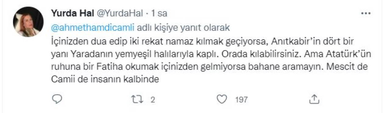 Anıtkabir fotoğrafını paylaşan AKP'li Çamlı, “Keşke bir köşesinde de mescid olsaydı” notunu düştü. Çamlı'nın dile getirdiği istek karşısında sosyal medya kullanıcıları tepki gösterdi.