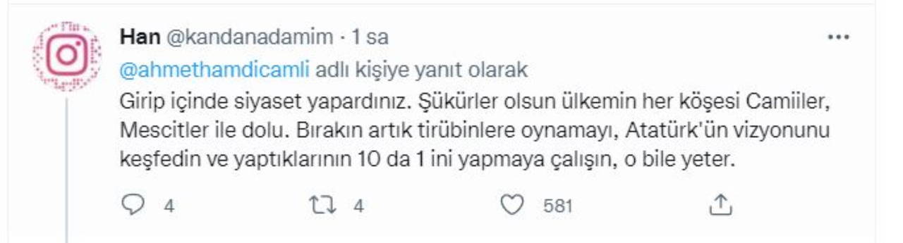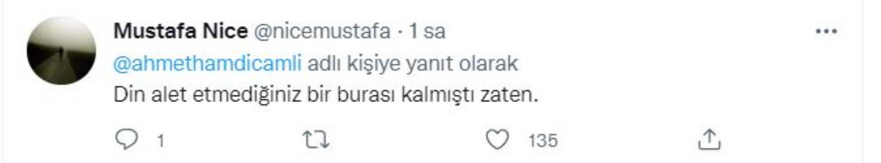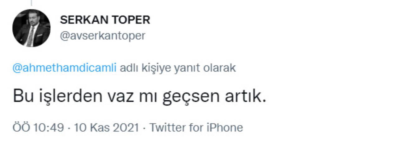 AKP’li Çamlı'nın tweetine ise Cumhur İttifakı'nın İstanbul Beşiktaş Belediye Başkan Adayı MHP’li Serkan Toper’den yanıt geldi.