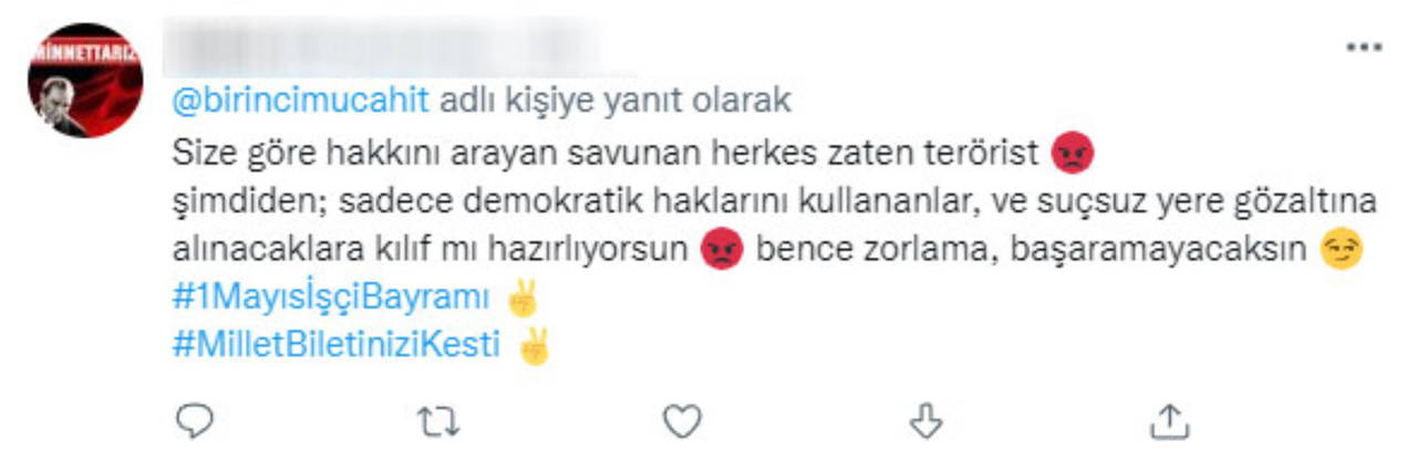 AKP MKYK üyesi Mücahit Birinci ise sosyal medya hesabından 1 Mayıs Emek ve Dayanışma Günü'ne ilişkin "Eskiden 1 Mayıs korkulan bir gündü. Artık AK Parti'nin vizyonu ile bir bayram olarak kutlanıyor ve resmi tatil. Dolayısıyla tüm emekçilerimizin 1 Mayıs bayramlarını kutluyorum" paylaşımında bulundu.