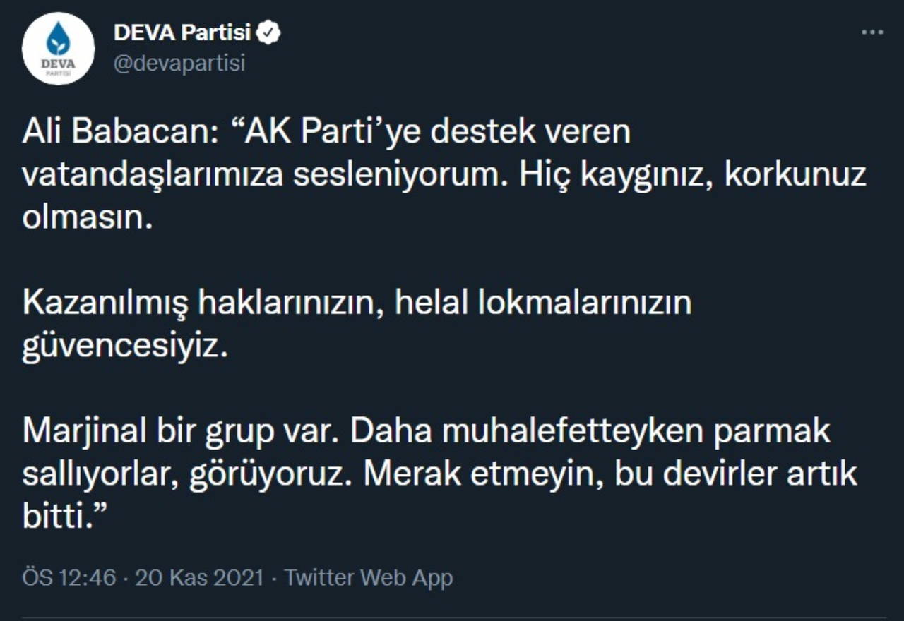DEVA Partisi lideri Ali Babacan, konuşmasında AKP'lilere seslendi.