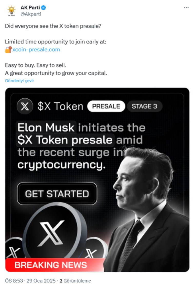 X'te ‘token’ ön satışı yapıldığı savunulan gönderide ‘katılmak için’ link de paylaşıldı.