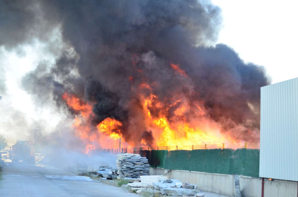 Aksaray Organize Sanayi Bölgesi'ndeki geri dönüşüm tesisinde, saat 14.00 sıralarında yangın çıktı.