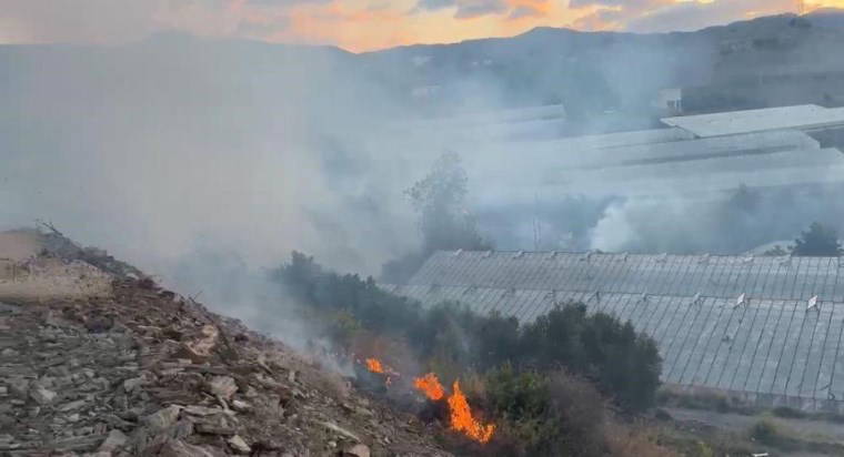 Edinilen bilgiye göre, elektrik direğinden başladığı değerlendirilen yangın, rüzgarın etkisiyle hızla yayıldı.