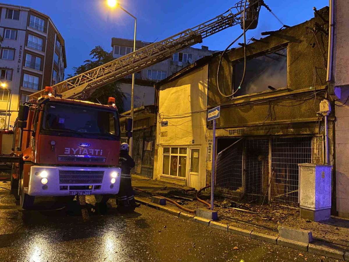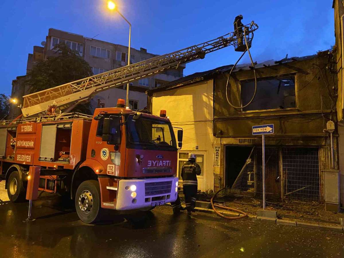 Yangın nedeniyle kullanılamaz hale gelen tarihi binanın bitişiğindeki yan binanın çatısında hasar meydana geldi.