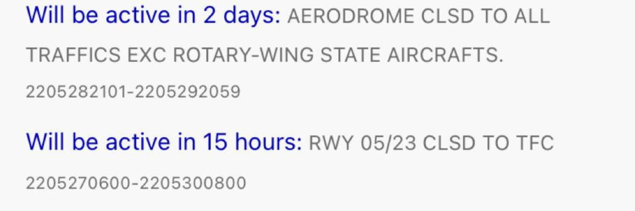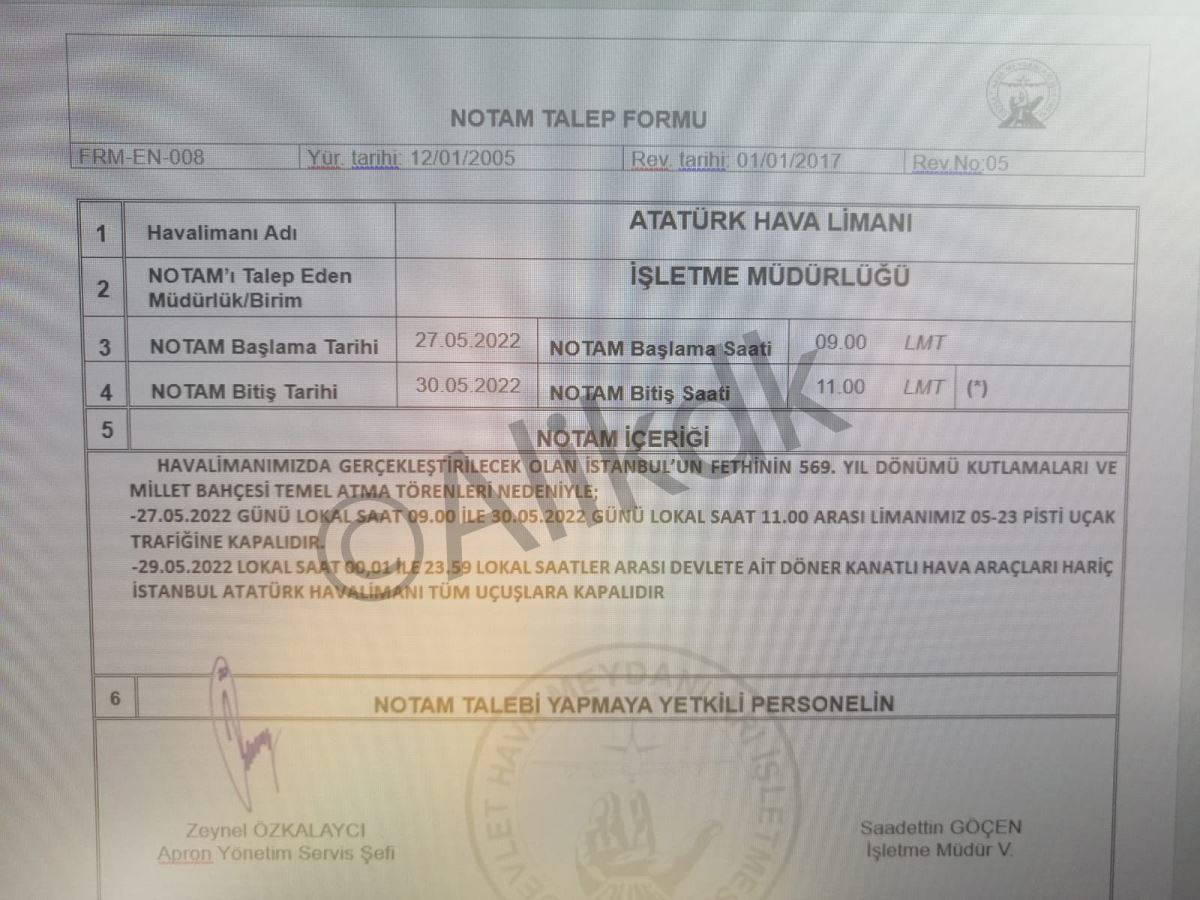 Kıdık, bahsi geçen NOTAM'ları yayımladı.