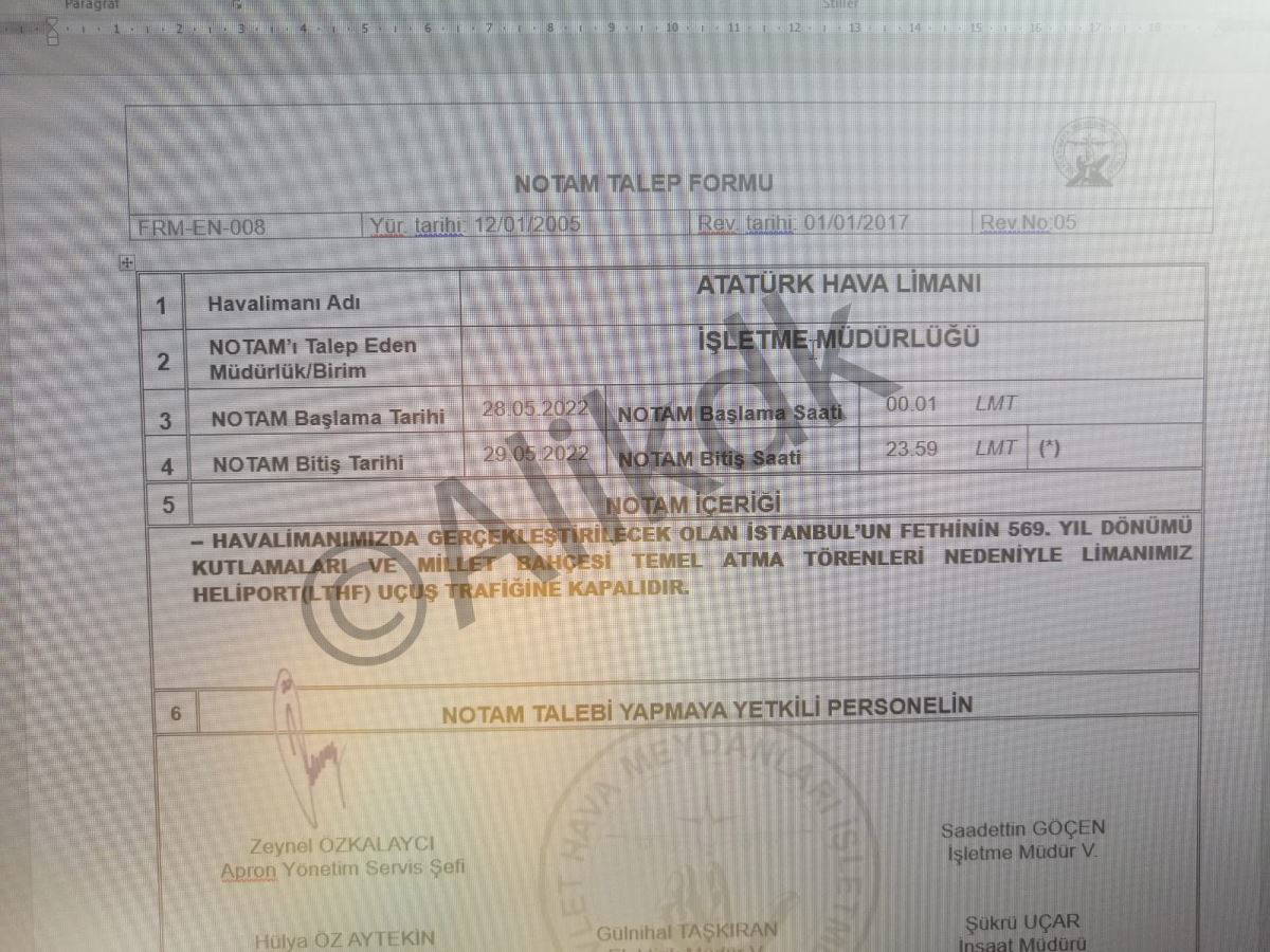 "Milyonlarca dolarlık cihazlar, uçaklar hangarlar bir şov uğruna tehlikeye atılıyor. Notam Pazartesi sabah 09.00’a kadar devam edecek"