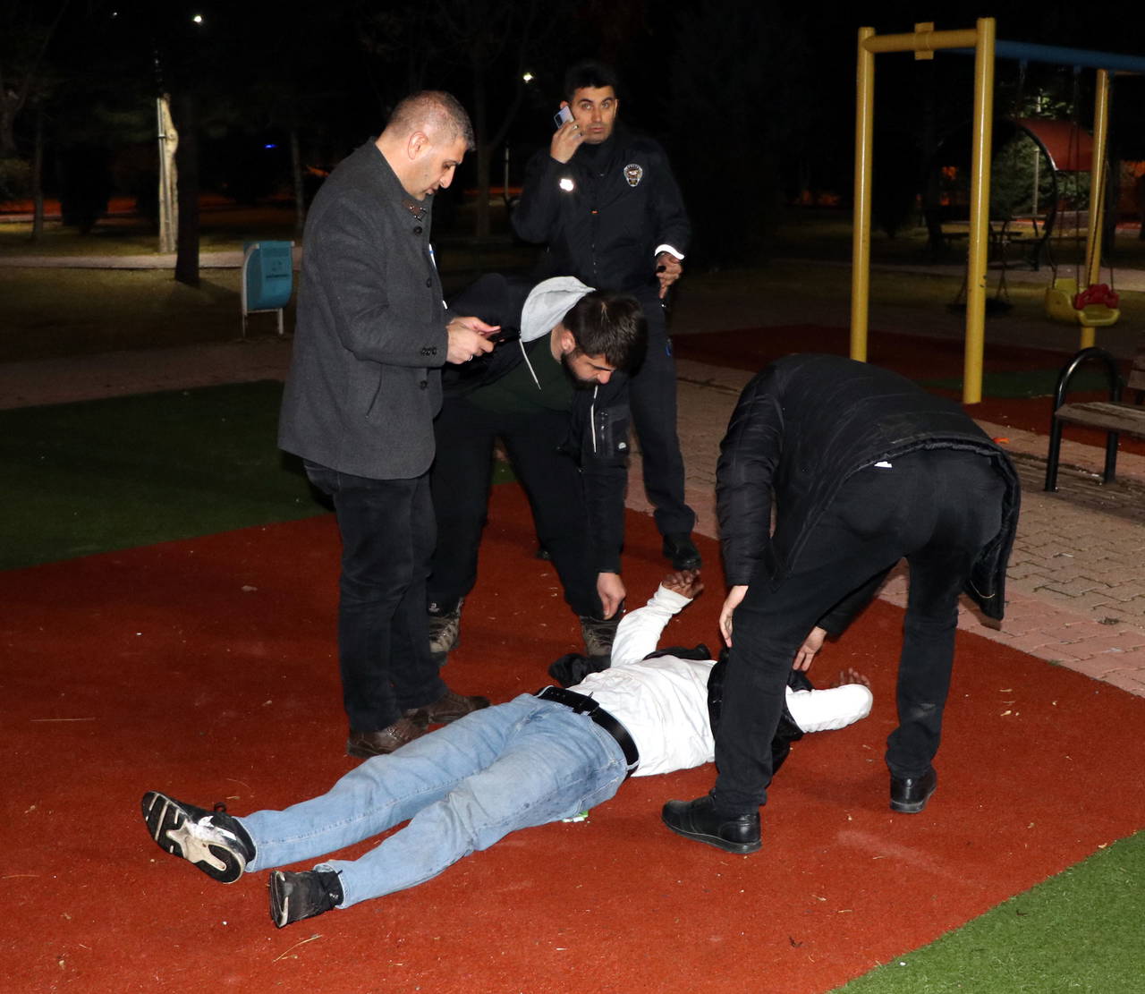 Yaralının sağlık durumunun iyi olduğu öğrenilirken, polis aşırı alkollü olduğu belirlenen şüpheliyi yerden kaldırmakta zorluk yaşadı.