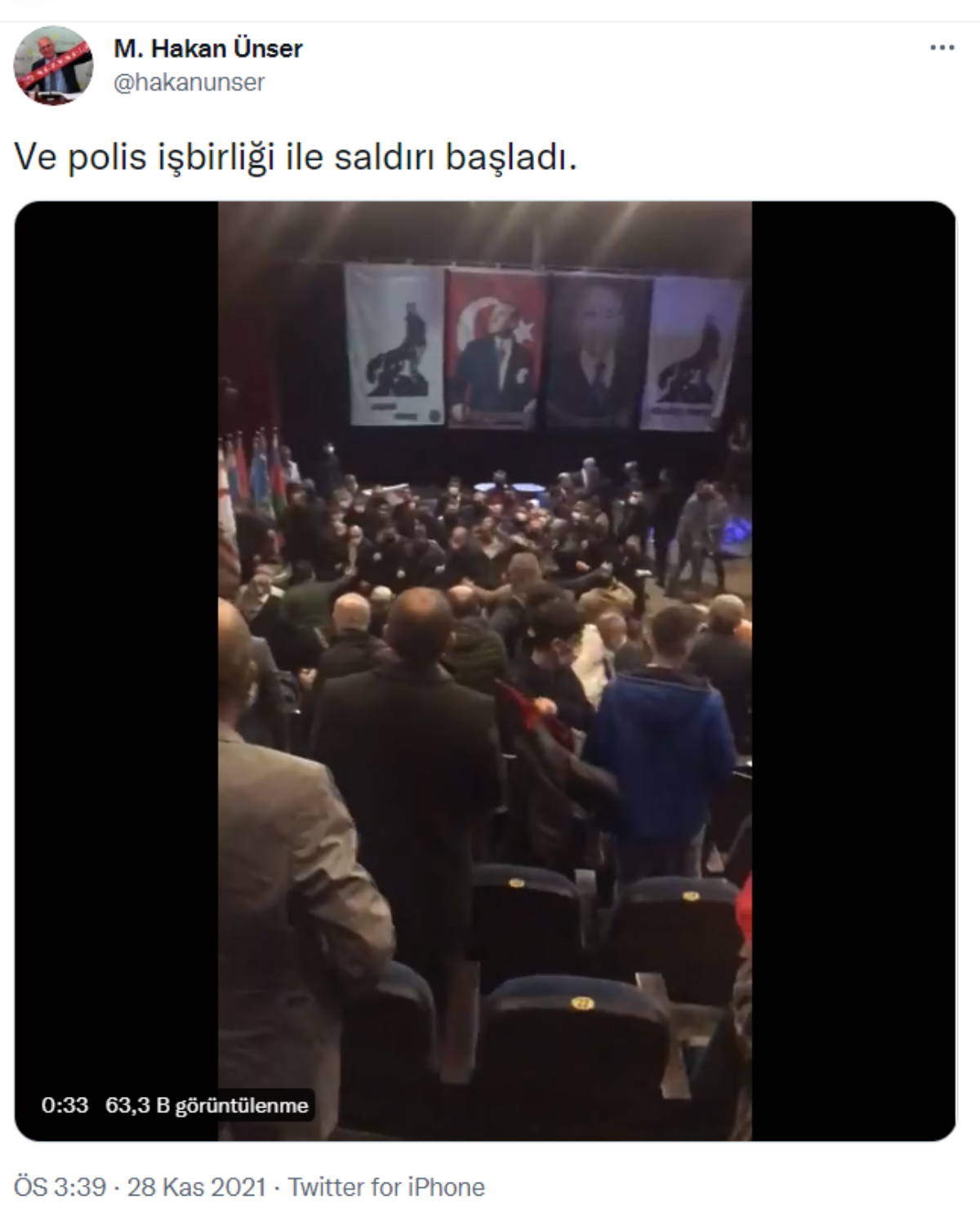 Eski Ülkü Ocakları Genel Başkanı Mustafa Hakan Ünser ise, saldırı anına ilişkin görüntüleri, "Ve polis işbirliği ile saldırı başladı" sözleriyle paylaştı.