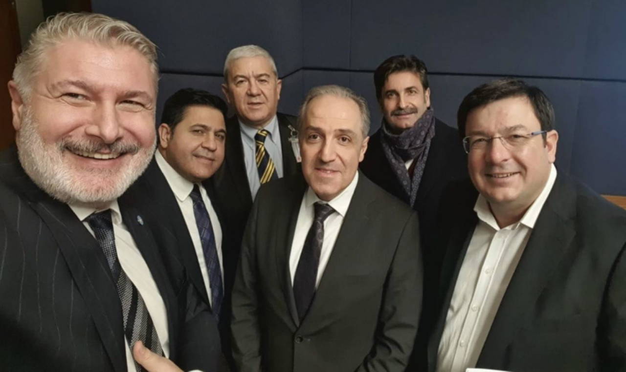 Tamamlanan çalışmanın ardından kurmaylar öz çekim yaptı. (Soldan sağa) İYİ Partili Bahadır Erdem, Saadet Partili Bülent Kaya, DP’li Bülent Şahinalp, DEVA Partili Mustafa Yeneroğlu, Gelecek Partili Ayhan Sefer Üstün, CHP’li Muharrem Erkek.