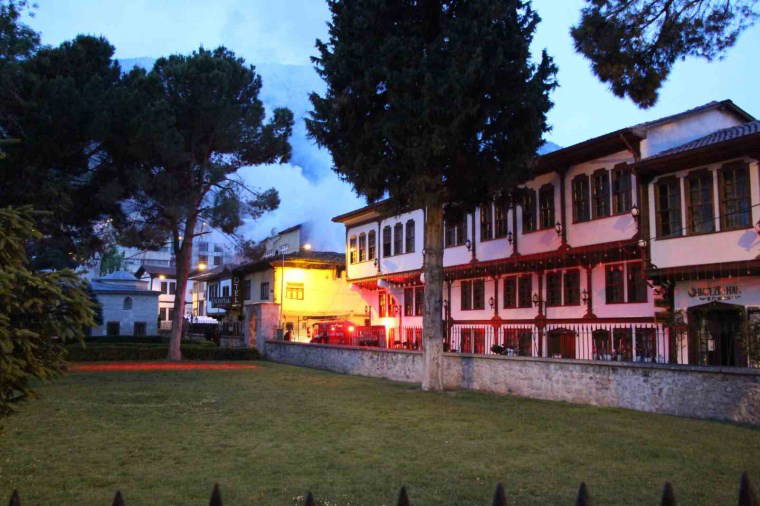 Edinilen bilgiye göre, Sultan II. Bayezid Cami’nin bulunduğu Hacı İlyas Mahallesi’nde çevresinde otellerin olduğu yaklaşık 100 yıllık konakta henüz bilinmeyen bir nedenle yangın çıktı.
