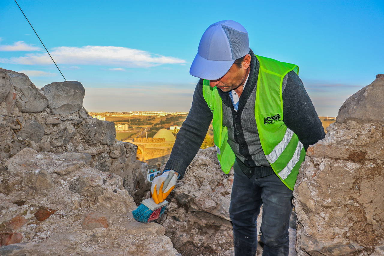 Prof. Dr. Yıldız, Artuklu Sarayı'nda yapılan çalışmaları anlatarak, "İçkale Artuklu Sarayı Kazısı 2023 yılı çalışmaları kapsamında, özellikle sarayın doğu tarafında bulunan ve sarayı çevreleyen surların bulunduğu alanda çalışmalar yaptık. Bu alanda yaptığımız çalışmalarda 1205 tarihindeki bilgilere dayanılarak yapılan çizimlerde gösterilen kapının izine rastladık. O çizimde sarayın doğu surlarında saraya açılan bir kapı olduğunu görüyorduk. Yaptığımız kazıda bu kapının izleri tamamıyla ortaya çıktı" dedi.